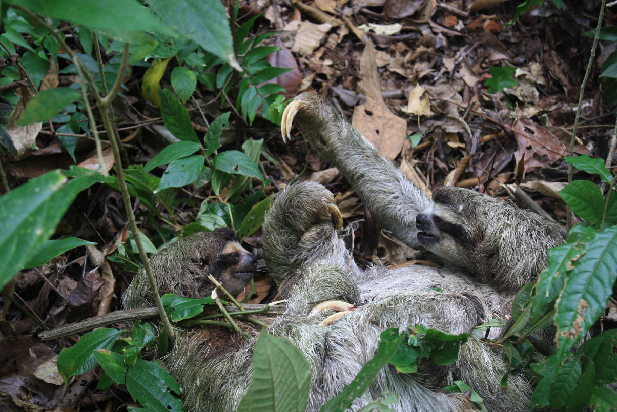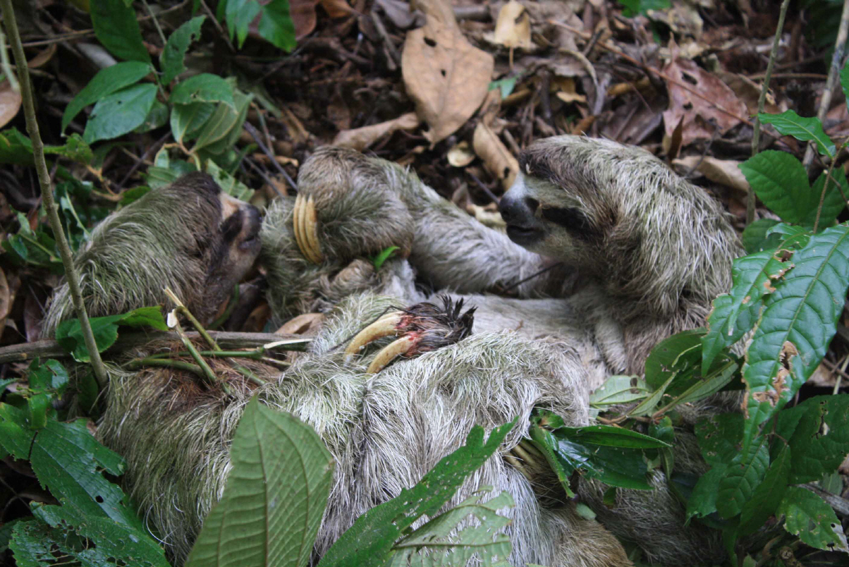 Bei den Kämpfern handelte es sich um zwei Faultiere. Die ersten Aufnahmen entstanden auf dem Weg zum Fort San Felipe und zum Strand. Die nächsten bei meiner Rückkehr. An der Lage der Beiden hat sich nach ca. zwei Stunden nichts geändert. Wäre das ein sportlicher Wettkampf bei uns Menschen, hätte der Schiedsrichter den Kampf wegen „unsportlichen Verzögerns“ abgebrochen und saftige Strafen verhängt. Aber vielleicht haben Faultiere ein anderes Verständnis für Zeit und Geschwindigkeit und für beide ist das eine ganz wilde Schlägerei. Dann steht „Wildtier“ natürlich für das Verhalten der Beiden.