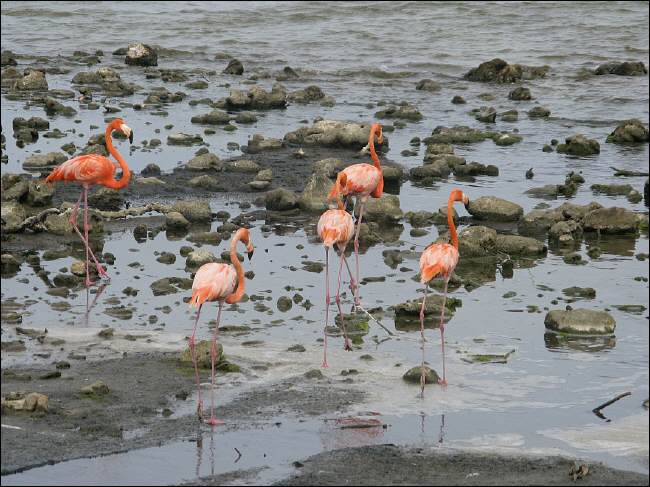 Hier könnten gut Wildwestfilme entstanden sein. Muß man einfach sehen, kann man gar nicht angemessen beschreiben. Das Fotografenherz bekommt Futter und viele Fotos. Du fährst durch den Park und triffst kaum einen anderen Jeep oder Leute. Du siehst, wo du anhalten darfst und mittendrin gibt es eine Bucht, die einlädt zum Schwimmen oder Schnorcheln, vis a vis der Flamingos. Damit hatten wir nicht gerechnet und kein Badezeug dabei. Wir erfrischten uns an dem Büdchen mit Wasser und sahen den Flamingos zu. Ein Tag im Naturpark ist viel zu kurz und vielleicht kehren wir von Curacao noch einmal zurück nach Bonaire. |