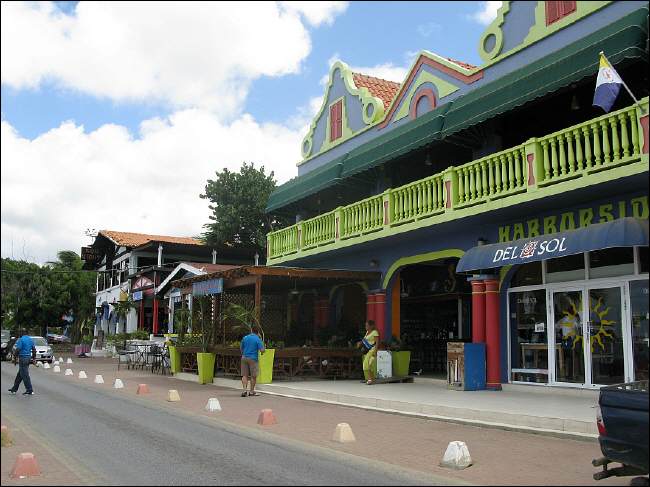Einklarieren ist wieder unkompliziert. Der Zollbeamte freut sich über Wilfrieds Niederländisch und mein Geburtsdatum. Sein Sohn wurde auch am 31. Oktober geboren und es ergibt sich ein Gespräch über Skorpione ! Bei der Emigration vergingen auch mal gerade 10 Minuten und schon haben wir den ganzen langen Tag für diesen bunten beschaulichen Ort. Es scheint das Leben hier im Zeitlupentempo voranzuschreiten. Selbst die Touristen können diesen Eindruck nicht verändern. Es gibt einen Anleger für Kreuzfahrtschiffe. Wenn eines davon anlegt und die Türen öffnet, strömen ca. 2.000 neue Urlauber durch die Straßen und beleben das Geschäft. Zum Glück bleiben sie ja nicht lange und die kleinen Geschäfte freuen sich über den raschen Umsatz. Abends strahlt der Ort dann wieder seine gewohnte Ruhe aus. |