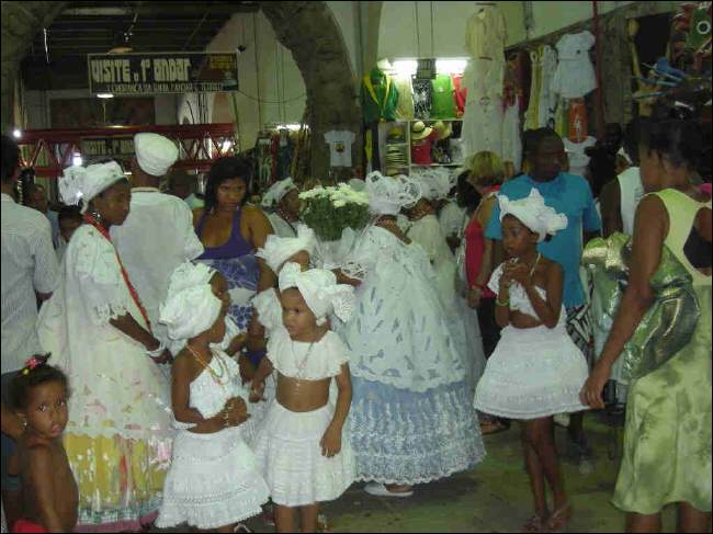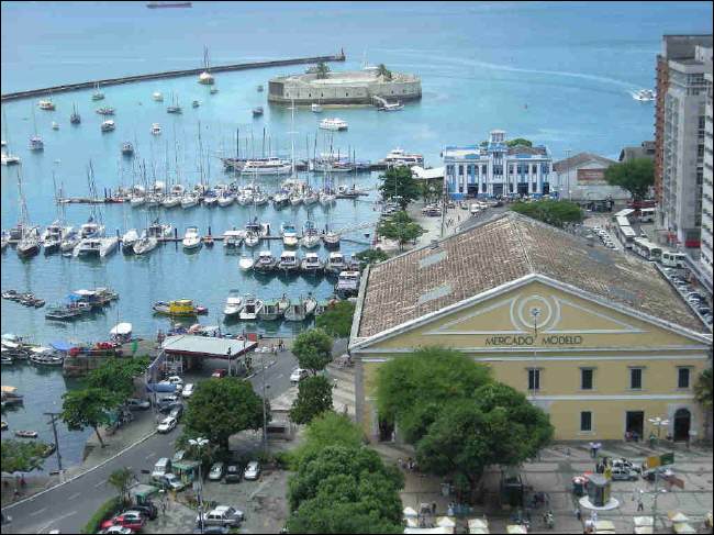 Direkt gegenüber beeindruckt der riesige „Mercado Modelo“. In früheren Zeiten befand sich hier das Zollamt (1861). Die Sklaven wurden mit Schiffen hierher gebracht und in den dunklen feuchten Kellern dieses „Umschlagplatzes“ mußten sie warten, bis sie auf dem Pelourinho versteigert wurden.