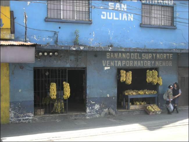 Am La Terminal kommen wir an, es ist nicht nur der Haupt-Busbahnhof des Landes, auch der groesste Warenumschlagplatz und Markt und alles andere als einladend auf kleinster Flaeche. Unzaehlige russende, hupende Busse verstopfen die engen Strassen und bringen Handelsgueter aller Art – und Menschen, die sie kaufen. Dicht gedraengt stehen die kleinen Laeden, Staende oder meist Holzverschlaege, viele davon illegal. Obst, Gemuese, Fleisch und Meeresfruechte werden angeboten, genauso wie Ersatzteile, Motoren oder Kleidung, Eiswagen oder Tortillastaende - es gibt nichts, was es hier nicht gibt.