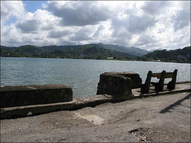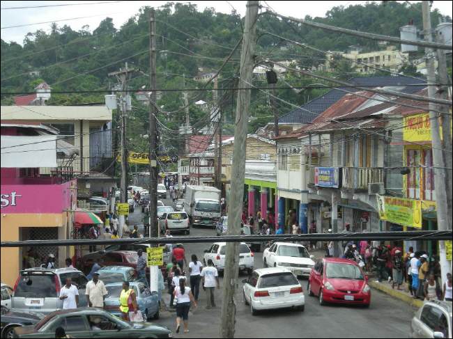 Port Antonio, Portland, im Nordosten der Insel ist ein Ort mit ca. 16.000 Einwohnern. Da wir großen Hunger und noch keine einheimische Währung haben, führt der erste Weg zur hiesigen Bank. Keine fünf Minuten brauchen wir um mitten im trubeligen Geschehen zu sein. Doch trotz großer Neugier und Wahrnehmung der neuen Umgebung gucken wir mit einem Auge immer auf unsere Füße und wo wir hintreten. Die Straßen sind große Kraterlandschaften, tiefe Löcher überall und der Bürgersteig oft steil abwärts. Kinderwagen oder Rollstühle sind nicht zu sehen, sie wären auch kaum zu handhaben. Das ist ein Beispiel für die meisten Straßenbeläge auf der Insel mit nur ganz wenigen Ausnahmen, z.B. der neuen Straße, die nach Kingston führt. Es ist bekannt, daß zahlreiche Projekte bezüglich Straßenbau von USA subventioniert wurden.Es heißt, die Gelder kommen bei dem zuständigen Minister an. Der braucht jedoch auch etwas für sich davon und gleich danach gibt es noch Verwandte, die er bedenken muß. Dieser wiederum bekommt einen Betrag für sich und den Auftrag, mit der dann noch verbleibenden Summe einen Vertrag auszuhandeln mit einer Straßenbaufirma. Diese Summe reicht jedoch dann nicht mehr aus, um die vielen Straßen fachgerecht zu erneuern und so wird immer weiter nur geflickt und ausgebessert.
