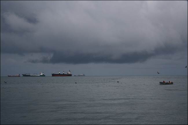 Der Kaepten weiss nach einem suchenden Gang uebers Gelaende, hier gibt es gar keine Gerueste zum Aufstellen, jeder nimmt irgendwas. Siicherheitsvorschriften? Was ist das? Wenn man bedenkt, dass er in Fort Lauderdale in USA seinerzeit einen Anschiss von der Security bekam, weil er beim Anstreichen keine Arbeitsschuhe nach Vorschrift trug. Beide Einstellungen sind typisch fuer das jeweilige Territorium.