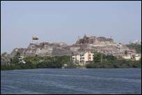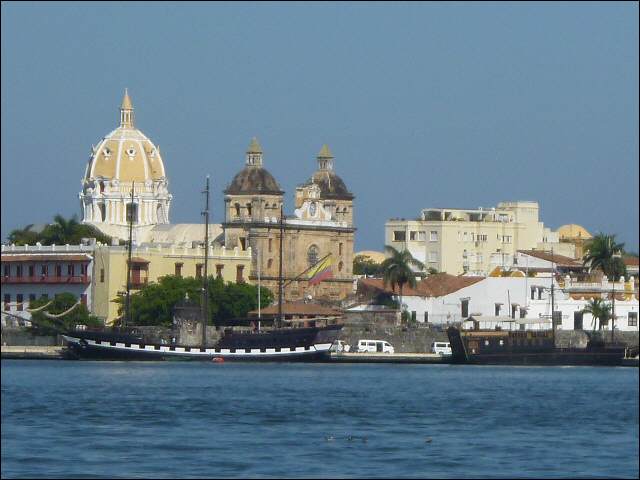 Ins Auge fassen wir jetzt San Andres. Das sind noch kolumbianische Inseln und ca. 400 sm entfernt. Bis Mitte Januar zoegern wir den Abschied heraus, dann aber wird es ernster. Grosseinkauf im Supermarkt, der tueteneinpackende junge Mann faehrt uns den Einkaufswagen ungefragt und gern bis in den Hafen an den Steg. Soviel Service belohnen wir gern mit ein paar Dollar Trinkgeld. Weiss doch jeder unterwegs, wie schwer allein die Getraenke fuer ein paar Wochen schon sind, von Kartoffel und Kohlkopf ganz abgesehen. Ich koche jede Menge vor und backe den ueblichen Streuselkuchen. So langsam macht sich doch die Spannungsfreude breit. Morgen frueh geht’s los, endgueltig. Wehmut und Freude loesen sich ab, das kennen wir schon. Nach dem Fruehstueck schnell noch das Dingi festmachen und die Sonnenabdeckung verstauen, Schiff ahoi und gute Fahrt. Cartagena verschwindet im Hintergrund: