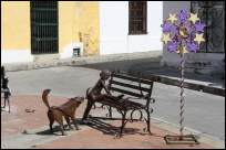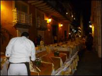 Es gibt tausend gute Gruende, die Reiseberichterstattung immer wieder auf morgen zu verschieben. Winterschlaf und viele neue Buecher, die gelesen werden wollen, sind die besten. Dank des gut gefuellten E-Book-Reader muss ich auf das hoechste Lesevergnuegen nicht verzichten waehrend wir eine Zeit noch in Panama und Columbien abwettern. Seit Weihnachten hat es nicht mehr geregnet, es pfeift ein angenehmer Wind und die Sonne lacht aus ganzem Herzen. Regenzeit ist out. Soviel Neues gibt es nicht zu berichten. Das neue Jahr hat supergut begonnen mit der Sylvesternacht. Wir haben uns unter die feiernde Menge gemischt und das war eine gute Idee. Feingemacht gegen 19.00 Uhr auf dem Weg in die Altstadt von Cartagena – natuerlich viel zu frueh. So erleben wir die Festmeile noch bei den Vorbereitungen. Die Gassen, durch die wir sonst schlendern, sind zugestellt mit festlich geschmueckten Tischen und Stuehlen. Wir schlaengeln uns dort entlang. Die Menge feiert draussen, die Plaetze sind vorbestellt und das Essen wird draussen serviert. Die exclusivsten Plazas vor den historischen Kirchen sind abgeteilt und Security wacht darueber, dass nur die edelsten Glitzer- und Glemmerleute ihre Tische besetzen.