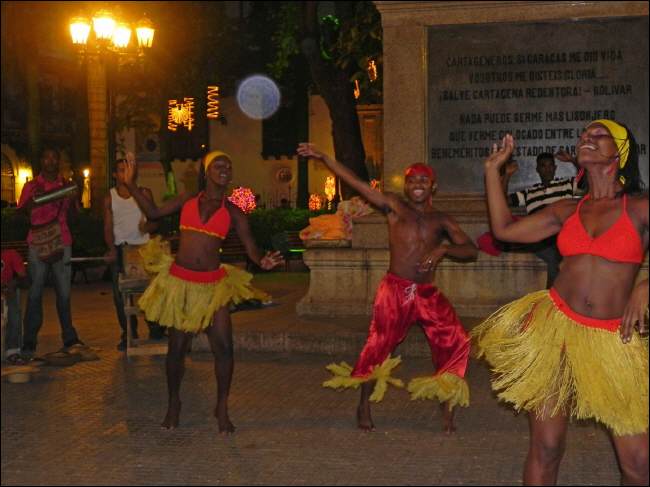 Das finale Feuerwerk um Mitternacht macht sich gut in dieser Altstadtkulisse und alle Leute wuenschen sich feliz ano novo, wildfremde“ Eingeborene“ knutschen uns ab und die Stimmung ist toll. Jetzt wird erst richtig losgelegt mit Tanzen und war es vorher noch recht muehelos sich durch die Gassen zu bewegen, wird es nun deutlich voller. Wo kommen all diese Menschen nur her? Aus allen Landesteilen. Wir sehen die Autokennzeichen und wissen, nach Cartagena zum Feiern kommt man aus dem ganzen Land zusammen. Familien mit Schulpflichtigen haben jetzt die laengsten Ferien des Jahres (November bis Ende Februar) . Haupturlaubszeit fuer Kolumbianer. Jedes Bett ist ausgebucht, der Strand in Boca Grande gut besucht.