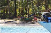 Nun warten wir ein paar Stunden und roesten noch ein wenig, bis der Schlauch repariert ist. Hungrig und obdachlos, wir koennen ja nicht an Bord. Kurz bevor die Sonne untergeht steht das Boot an Land und unsere Helfer muessen heim zu Weib und Kind. Heute geht nix mehr, ein verlorener Arbeitstag. Wir freunden uns mit dem Landplatz an und werden von den Mosquitos freudig empfangen. Das Roesten in der Blechdose kann beginnen, welcome. In drei Tagen duerfte es zu schaffen sein.