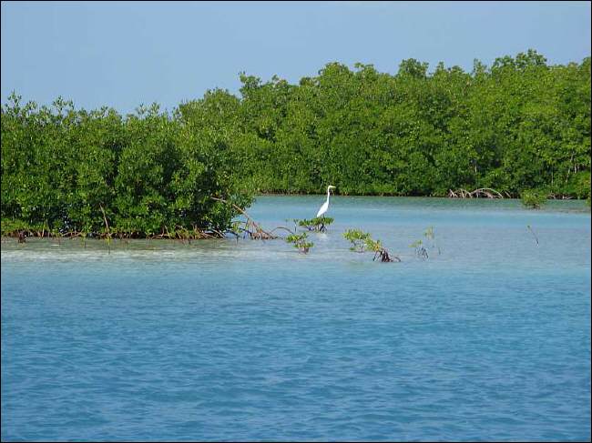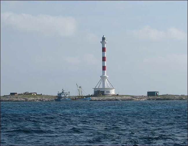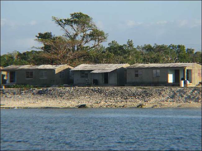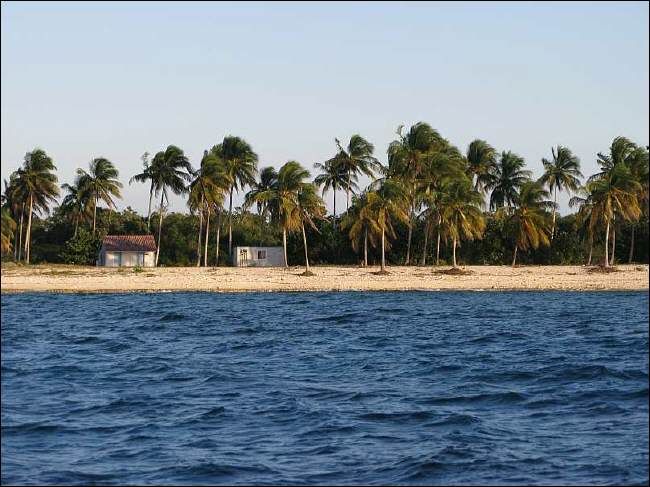 In Cayo Largo müssen wir unbedingt im Hellen ankommen wegen der Untiefen. Die letzten 30 sm sind heute nicht mehr zu schaffen und auch aus diesem Grund steuern wir abends eine Ankerbucht in Guano del Este an. Sie liegt vor einer winzigen Insel, auf der nur ein Leuchtturm steht und außer ein paar wenigen Bäumen noch ein paar kleine Schuppen. Der Leuchtturm ist aber bewohnt, mit dem Fernglas sehen wir herüber und schließen aus der aufgehängten Wäsche und des „wuff, wuff“ eines herumrennenden Hundes, daß selbst dieses kleine Fleckchen mitten im Meer seinen Hüter hat.