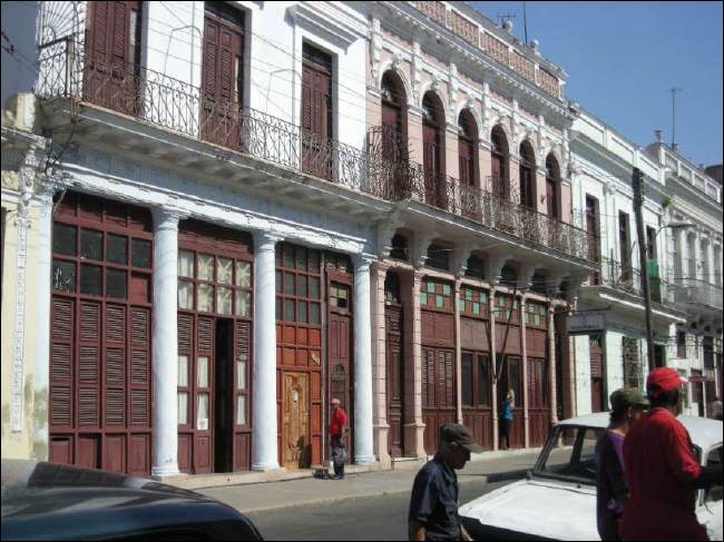 Kuba ist ein Land der größten Gegensätze und das bemerken wir bereits in dieser ersten Stadt auf unserer Reise. Ein paar Straßen weiter bereits sieht es bereits total anders aus. Dort kann man noch deutlich den ehemals aufwendigen Baustil erkennen, aber seit der Revolution vor 50 Jahren ist kein Geld mehr für Erhaltung oder Renovierung ausgegeben worden. Die Häuserzeilen sind alt, heruntergekommen und teilweise ziemlich verfallen. Aber dennoch bewohnt. Da die hohen Türen und Fenster fast überall offenstehen wegen der Kühlung, siehst du, daß es innen sehr einfach, aber sauber und wohnlich eingerichtet ist, was im krassen Gegensatz zur äußeren Fassade steht. Die Häuser sind staatlich und was die Bewohner machen können im inneren Bereich, das versuchen sie mit wenig Geld und viel Kreativität – Cienfugeos ist nur ein Beispiel dafür, wie es in dem gesamten Land aussieht. So müssen die Kubaner die mehrmals im Jahr stattfindenden „Ausräucherungen“ bzw. Attacken des Gesundheitsamtes widerspruchslos hinnehmen. Sie rücken mit schwerem Geschütz an chemischen Keulen vor gegen jegliches Ungeziefer, das in diesen alten Mauern Party feiern möchte. Jede Wohnung wird bedacht und Einwände von Müttern mit Säuglingen und Kleinkindern oder gar Asthmatikern werden nicht zur Kenntnis genommen. Das sind Feinheiten, auf die keine Rücksicht genommen wird.