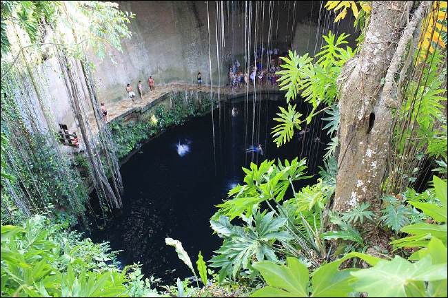 Ein High-Light zum Abschluss der Tour war der Besuch einer der Cenotes. Davon gibt es in Mexico reichlich. Es sind unterirdische Fluesse, die den Kalksandstein ausgewaschen haben. Durch Einsturz der Decken entstehen offene Hoehlen, in den Zeiten der Maya-Kultur waren es die Oeffnungen zur Unterwelt. Heute gelten sie als Attraktion fuer Touristen, die nach einem heissen Tag freudig ins kalte Nass springen. Leider war die Zeit sehr kurz bemessen nach dem Besuch in Chichen Itza, so dass nur wenige unserer Gruppe noch in aller Eile dieses Bad geniessen wollten. Das holen wir dann spaeter an einem anderen Ort nach. Ein schoener Tag mit vielen Eindruecken und Erlebnissen war rasch zu Ende und um 22 Uhr zurueck an Bord fielen wir todmuede in die Koje.