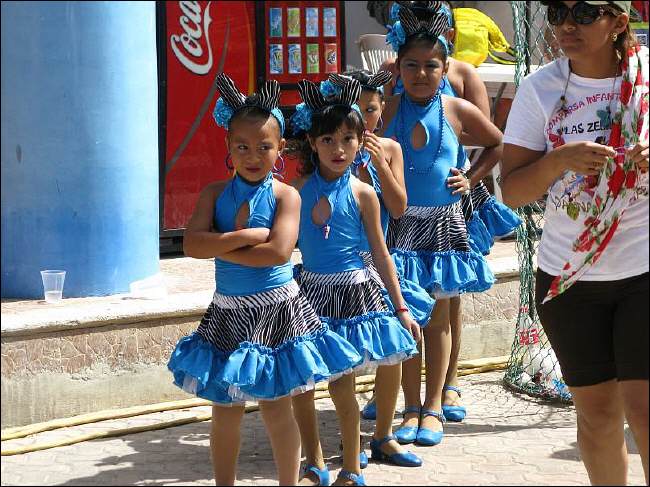 Wie daheim in Koelle und Umgebung ist jetzt Karneval. Was genau geplant ist, kann uns niemand erklaeren. Also heisst es, jeden Tag ins Dorf gehen und gucken und abwarten. Samstag zogen bunt dekorierte Tanzgruppen durch die Strassen und heute (Sonntag) schwebt noch eine finstere schwarze Regenwolke ueber allem und die warten wir noch ab, bevor wir uns wieder ins Getuemmel stuerzen.
