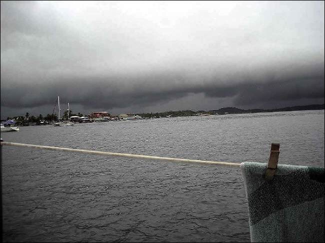 Die naechste Etappe bis Roatan uebernimmt wieder der Motor. Der versprochene Wind will einfach nicht aufkommen. Nach der langen Pause fallen uns die Nachtwachen wieder schwerer und auf Roatan schlafen wir noch mal richtig aus. Wir haben ja Zeit. Mit dem Dingi fahren wir an Land und nehmen die Gelegenheit fuer einen Einkauf im gut bestueckten Supermarkt wahr. Wir wissen ja nie, wo es das naechste Mal frisches Obst und Gemuese gibt. Um die Insel kennen zu lernen (wofuer wir unbedingt einen Mietwagen braeuchten) haben wir keine Ruhe, Honduras ist jetzt nur als Durchfahrtsland geplant. Wenn wir auch nur motoren, so ist das zum Weiterkommen immer noch besser als manches Unwetter, dass schnell fuer einige Tage die Boote am Anker festhalten laesst. Aber es ist bereits Hurricansaison offiziell und man weiss ja nie, wann es wirklich losgeht. Jetzt wollen wir auch nur ankommen in Panama und sind schon sehr neugierig auf das „Tor zur Suedsee“.
