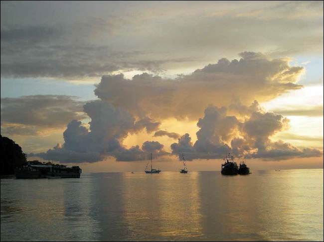 Erst als es dunkel wird, loest die Belagerung sich auf und wir erleben wieder einmal einen „einzigartigen“ Sonnenuntergang. |