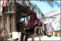 Nargana gefaellt uns gar nicht, laengs des Ufers ueberall viel Muell, auch Plastik und die Huetten notduerftig zusammengehalten und ein Mischmasch aus den ueblichen Strohhuetten und einigen aus Beton. Nicht verputzt, rohbauartig und selten fertiggestellt, alles wirkt wie eine immerwaehrende Baustelle und schmutzig und zugemuellt. In der Mitte des Dorfes sind die Wege sauber, aber kaum etwas Gruen um die eng aneinander gebauten Huetten.
