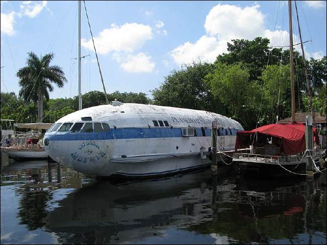 Gleichzeitig haben wir mit Mike einen guten Reisefuehrer an unserer Seite, mit Vergnuegen zeigt er uns besonders nennenswerte Orte oder Villengrundstuecke. Al Capones Anwesen, Donald-Trumps-„Wochenendhaeuschen“ sowie ein am Kanal liegendes ehemaliges Flugzeug, das ein Freak sich umgebaut hatte zu einem Motorboot. Mehr davon – falls es Euch interessiert – koennt ihr unter www.planeboats.com im Internet finden.