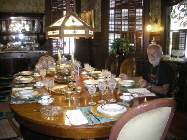 So auch das weisse Prachtexemplar siehe oben.. Ein Kaufmann und Millionaer namens Curry baute es Anfang des 19. Jahrhunderts fuer sich und seine Familie und hatte immer ein offenes Haus fuer Gaeste, vor allem in seiner Zeit als Buergermeister. Es ist bis heute im Familienbesitz geblieben und wurde von der jeweils naechsten Generation bewohnt Die Moebel, Kleidung, Buecher, Spielzeuge, Fotos und selbst der Weihnachtsschmuck und persoenliche Dinge der Familie von damals bis in die Moderne sind zum Bewundern freigegeben. Alles, was eine Grossfamilie in 100 Jahren ansammeln kann durch alle Jahrzehnte hindurch, liegt da bereit, als wenn die Leute mal eben zum Einkaufen unterwegs waeren. Die jetzigen Nachfahren wohnen gegenueber und leiten eine Pension. Zu besonderen Gelegenheiten vermieten sie auch einige Raeume der Villa z. B. an Hochzeitsreisende.