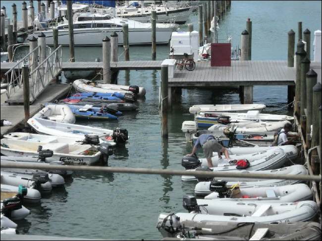 Die Ankerfelder liegen weit genug weg, anders als in der Karibik hoeren wir die Musik kaum. Wir warten auf gutes Segelwetter, um den letzten Schlag bis Miami zu machen. Die vielen kleinen aufgeschobenen Reparaturen sind faellig und Wilfried will Deck und Cockpit noch einmal neu anstreichen. Die Farbe von Trinidad hat nicht richtig abgebunden und der Rost tanzte schon wieder in allen Ecken.. Mehr als zwei Wochen sind wir bereits hier, stellen wir heute erstaunt fest. Es wird Zeit fuer die naechste Tour, morgen frueh wollen wir bis Marathon segeln und wenn das Wetter es zulaesst bis Miami.