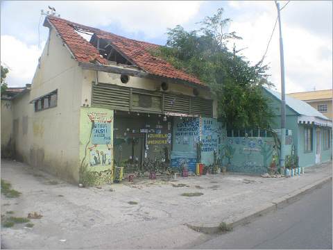 Außerhalb des Zentrum sieht es nicht immer so fein und saniert aus. Da kann man ganz wechselhafte Eindrücke bekommen, die die Reiseführer nicht erwähnen.Wir sind jedoch erstaunt, daß auch die kleinsten Hütten durch die bonbonfarbigen Anstriche ein schmuckes Aussehen bekommen. Gärten gibt es so gut wie gar nicht, die Erde ist karg und trocken. Wie in Bonaire ist das meiste Grün von den Kakteen, die überall wild wachsen.
