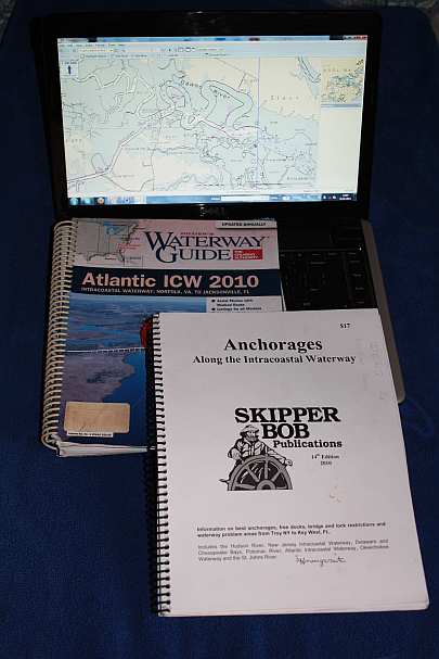 Auf ca. 120 Seiten werden Ankerplaetze am ICW, Bruecken mit Oeffnungszeiten und Besonderheiten sowie Unregelmaessigkeiten am Kanal beschrieben. Die Angaben zu Marinas sind nicht komplett. Im Internet kann man sich Updates und Berichte von anderen Skippern, die den Kanal befahren haben, runterladen. Skipper Bob war fuer uns die „Bibel“. Die Entfernungen werden ab Norfolk Richtung Sueden angegeben, genau wie im: