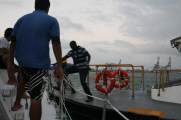 |   | Der Lotse kommt doch noch. |   | Einweisung vor dem Start. |