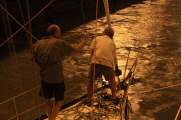 |   |   |   | von links: der Grosse liegt schon in der Schleuse,die Leinen werden belegt und dann wird das Tor geschlossen. |