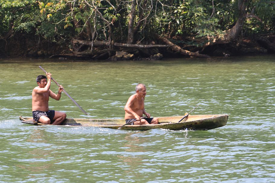 Es ist ein Fest fuer alle Sinne, fuer die Augen, Ohren und die Nase. Am Rio Dulce leben noch viele Kekchi-Indianer, die sich vorwiegend vom Fischfang ernaehren und im Hinterland ein wenig Mais oder Bananen anpflanzen. Sie leben am Flusslauf in einfachen palmstrohbedeckten Hozhuetten. Das Paddeln in ihren selbstgebauten Einbaumkaehnen lernen hier schon die Kleinsten, ist es doch das einzige Fortbewegungsmittel.