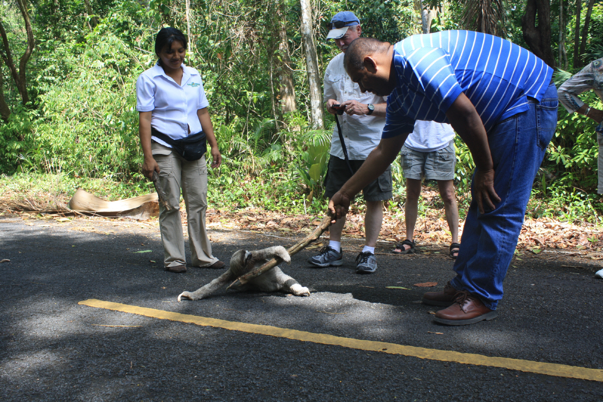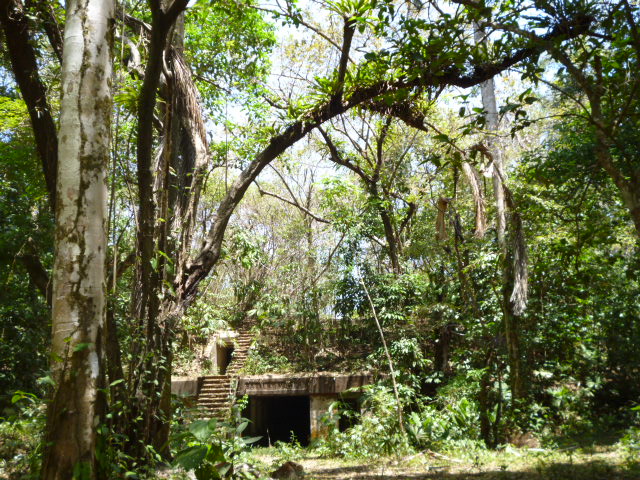 Zwischendurch vertreten wir uns die Beine rund um die Marina herum, da Colon sich fuer Spziergaenge kaum eignet. Das im nahen Dschungel gelegene Fort Sherman bietet sich an, der Weg ist recht gut begehbar. Wilfried hat das Glueck, im rechten Moment zwei Faultiere beim Zweikampf zu beobachten und auch fotografieren zu koennen. Ein seltenes Zusammentreffen, die unmutigen Laute und das sichtbare Herzklopfen der Rowdies war leider nicht einzufangen.