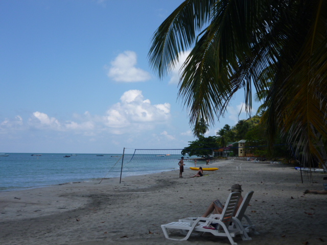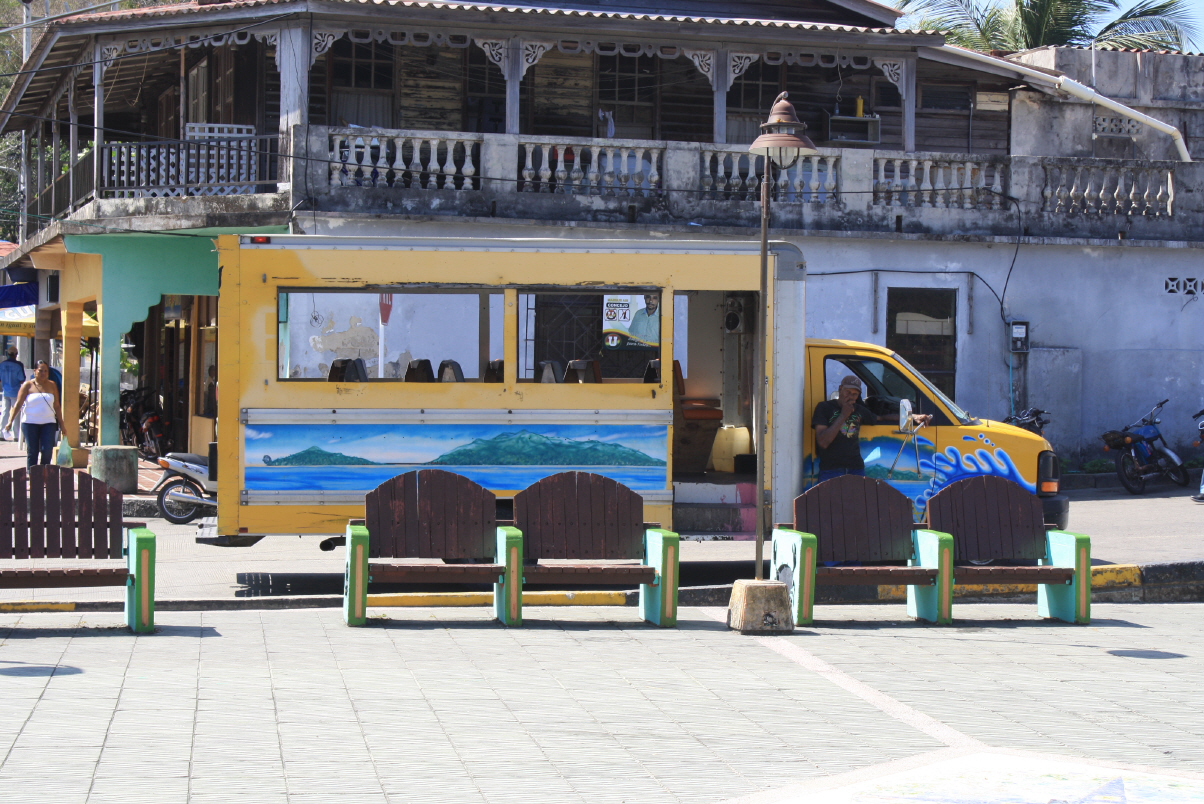 Fuer den Nichtsegler-Touristen ist dieses Paradies durch den eingeschraenkten Flugplan nicht ganz einfach zu finden. So ist diese Insel samt ihrer winzigen Schwesterinsel Santa Catalina, die ueber einen kurzen Fussweg ueber eine Buecke zu erreichen ist, kaum ueberlaufen und noch sehr natuerlich. Ausser uns Seglern sehen wir kaum Touristen im Ort, spaeter bei den Rundfahrten in den speziellen Tauch- und Schnorchelgebieten ein paar wenige einheimische Touristen vom Festland oder aus den Nachbarlaendern Costa Rica und Panama.