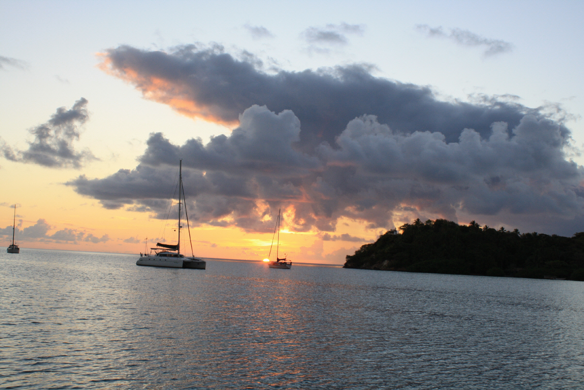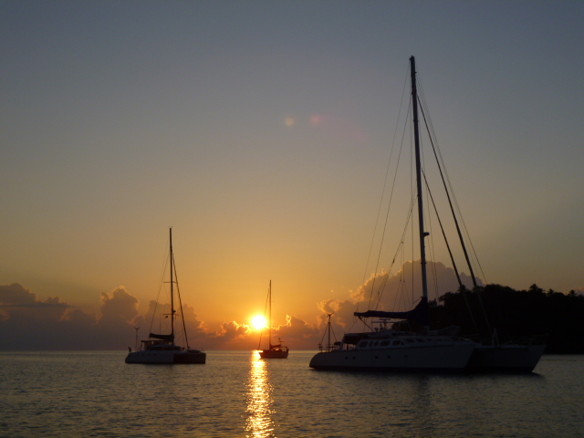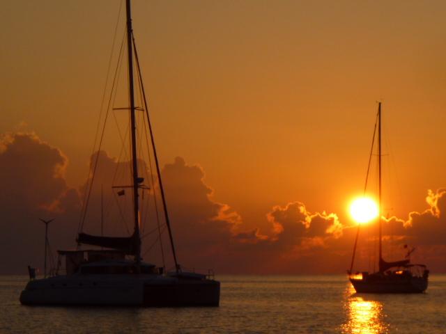 Wir lassen den Anker fallen in der wunderbar gelegenen Bucht, in der bereits einige Yachten liegen. Viel zu muede um heute von Bord zu gehen, schlafen wir 2 Stunden und sitzen rechtzeitig zum Sonnenuntergang im Cockpit. Soviele Untergaenge wir schon erlebt haben, sie sind immer wieder neu und beeindruckend. Obwohl ..... ist dies nicht wirklich der Schoenste von allen?