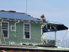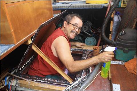 Jeff arbeitet schnell und gut, wenn er denn arbeitet. 9 Uhr erscheint er wie verabredet, um zu sagen, dass er gleich beginnt aber erstmal fruehstuecken geht. Das dauert fast 2 Stunden, wir Preussen wippen derweil ungeduldig mit dem Fuss. 1 Stunde arbeitet er und dann ist schon Zeit fuer Lunch. Der Mann muss doch bei Kraeften bleiben. Na klar, verstehen wir und somit macht er von 12 – 14 Uhr Pause. Dann geht es aber zuegig voran.