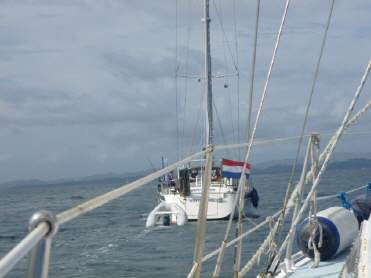 Die kommt ungefragt, wir hoeren auf Kanal 16 „Senta, hier ist Waterman, braucht Ihr Hilfe?“ Hidde und Bep, unsere hollaendischen Bekannten aus der Shelterbay-Marina in Colon, liegen mit ihrem Boot „Waterman“ neben dem Coast-Gard-Boot und wollten gerade ablegen als sie unseren Funkcheck hoerten.