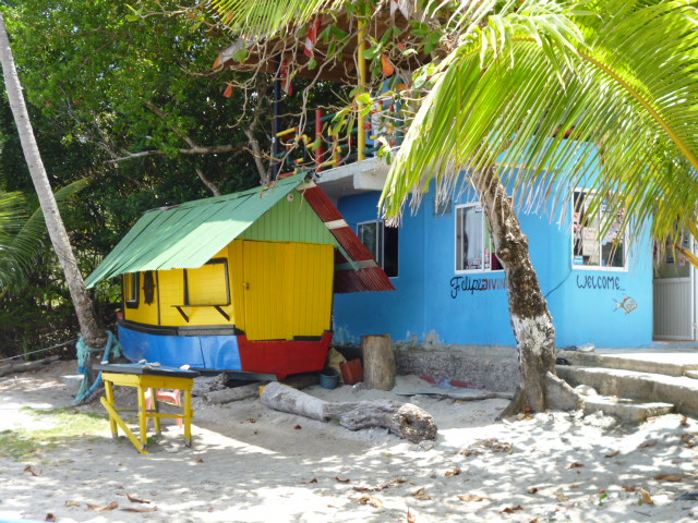 So staunten wir gemeinsam ueber die feinen weissen Sandstraende, die kaum belebt sind, ueber huegelige Palmenwaelder, die Wahnsinns-Aussicht von manchen Punkten aus ueber das weite in vielen tuerkis-blauen Farbtoenen im Sonnenlicht funkelnde Meer. Vielleicht hoert sich das jetzt an wie aus einem Reisekatalog, aber genauso empfinden wir Providencia. Tauchen, Schnorcheln, Surfen, alle Wassersportarten laden ein zum Mitmachen und an manchen Straenden gibt es abends Live-Reggae-Musik und Lagerfeuer. Karibik pur und das ausgesprochen herzliche und offene freundliche Voelkchen kennen zu lernen ist eine wahre Freude.