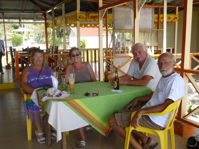 Die Freude ist gross, sie kommen unter Motor raus aufs Meer und schleppen uns an den Ankerplatz vor der Bocas-Marina, deren Buero wohl nicht besetzt ist. Heute wollen wir nur noch ausruhen und Schlaf nachholen. Als Dankeschoen fuer die unverhoffte Hilfe laden wir sie 2 Tage spaeter zum Essen in ein gemuetliches Restaurant am Wasser ein und verbringen noch einmal einen schoenen gemeinsamen Abend, bevor unsere Wege sich wieder trennen. Vielleicht sehen wir uns in San Andres wieder oder in Isla Providencia.