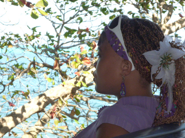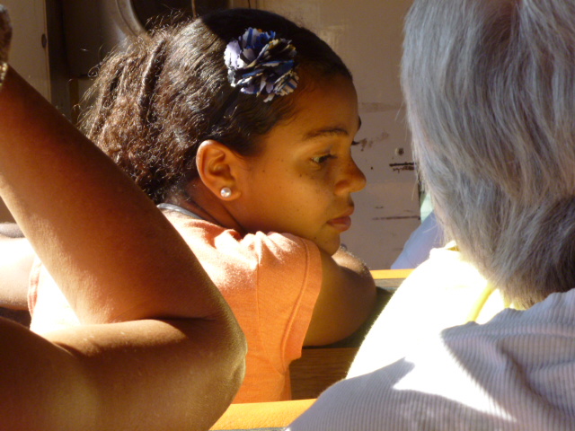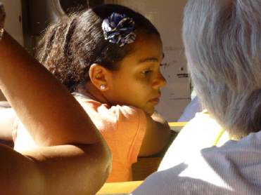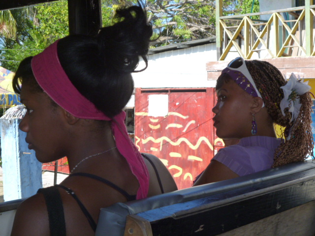 Unterwegs steigen einige Schuelerinnen ein, die wunderbare Fotomotive abgeben mit ihren kunstvoll gerichteten Frisuren und dem Haarschmuck. Sie kichern und koennen es gar nicht nachvollziehen, warum wir sie so gern fotografieren.