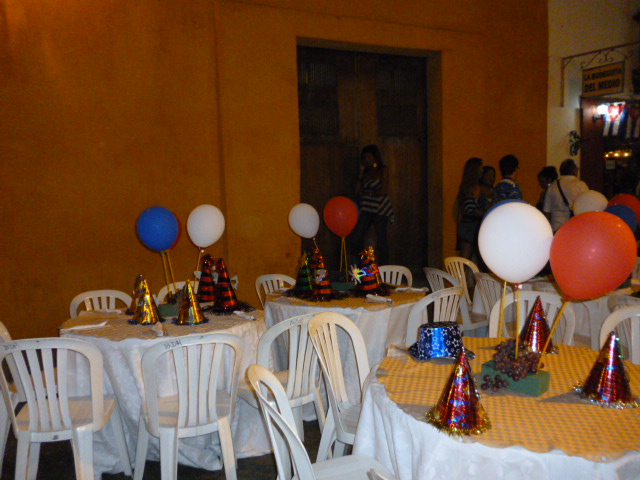 2 Stunden spaeter scheint niemand mehr in den Haeusern zu sein. In den vielen Seitenstrassen, die etwas abgelegener liegen, haben die Leute ihre eigenen Tische und Stuehle draussen aufgebaut und es wird gegrillt, geschmaust und gefeiert. Sie tragen alles aus den Kuechen auf die Strasse. Am Strassenrand sehen wir so manchen alten Senor oder eine Senora, die im Rollstuhl oder einem Schaukelstuhl geparkt werden, Decke ueber die Beine und ein Glaeschen in die Hand gedrueckt mit hochprozentiger „Medizin“ ! Lebenselixier? Zwischen wach und schlummernd erwarten sie das neue Jahr.