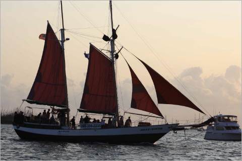 Von diesem Angriff auf jeden Segler ist der Wind voellig erschoepft. Es bleibt nichts uebrig fuer unsere 450 sm, die vor uns liegen. Mal Segeln, mal Motoren, wir kommen langsam vorwaerts. Als wir nach 6 Tagen eintreffen und den Anker fallen lassen in Key West, sind aus den 450 sm doch 600 sm geworden durch staendiges Kreuzen, um an das Ziel zu kommen. Muede aber gluecklich goennen wir uns am Abend einen amerikanischen Festschmaus mit Steak, Reis und Bohnen und in Gedanken an Kuba einen Mojito. Das ANKOMMEN ist eben doch das Schoenste am Segeln!?