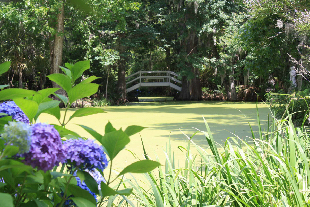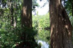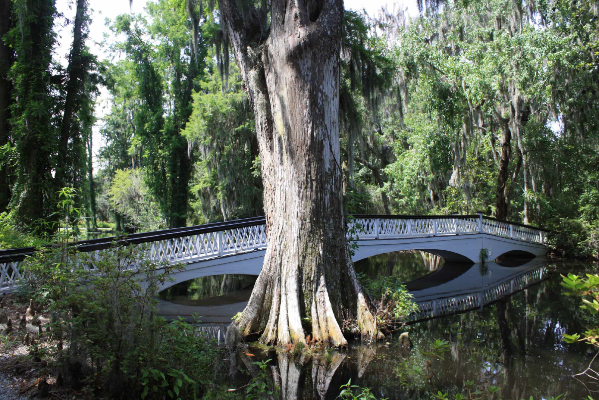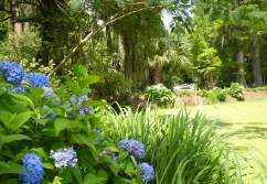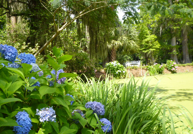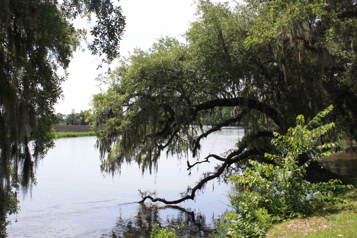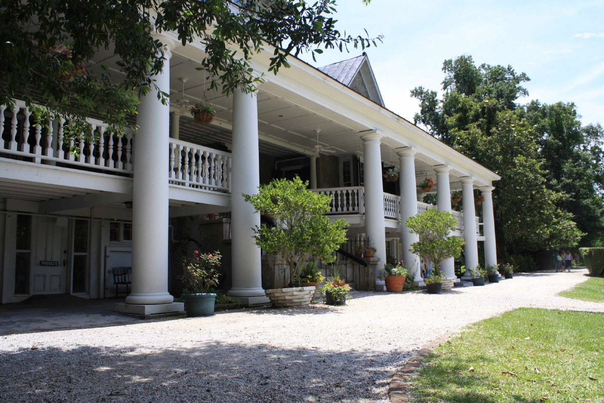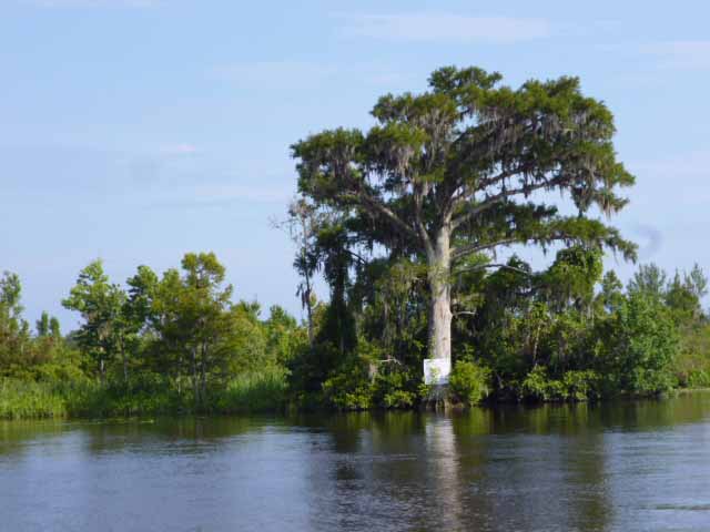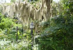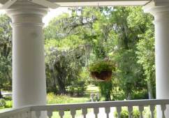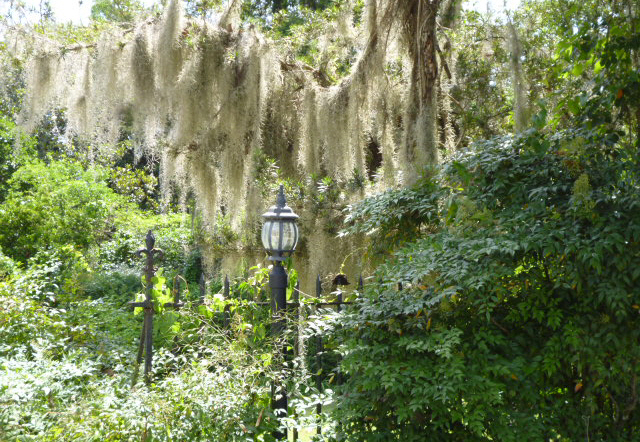 Wir besichtigen unter Fuehrung die Villa und machen spaeter eine Wanderung ueber die Plantage. Riesige Waelder gehoeren dazu und Fluesse und Suempfe, wo frueher Reis angebaut wurde. Heute beherbergen sie Aligatoren, Fische, Schildkroeten und Seeschlangen. Es ist nicht erlaubt, allein dort spazieren zu gehen. Die Suempfe sind nicht braun, schlammig und sichtbar, ein feines Gruen zwischen den Baeumen taeuscht das Vorhandensein von Wiese vor und wuerde den unkundigen Spaziergaenger verschlingen. Uralte dicke Eichen mit Luisianna-Gras zanken den Fotografen in uns, unmoeglich ist es, diese ausladende Pracht auf ein Foto zu reduzieren. Sie werden bis zu 1000 Jahren alt.