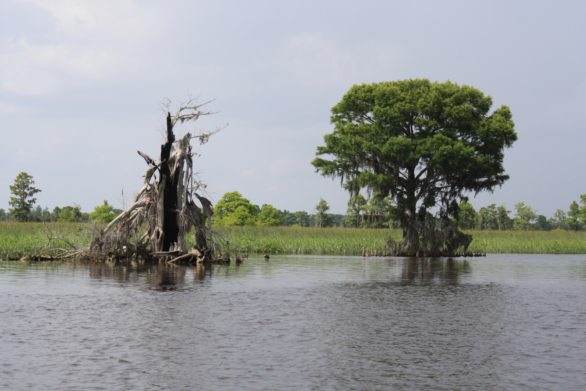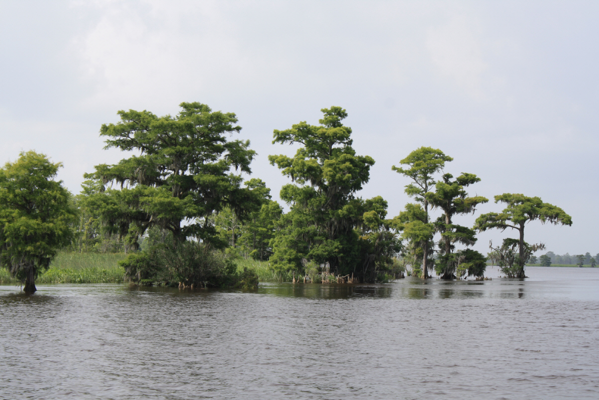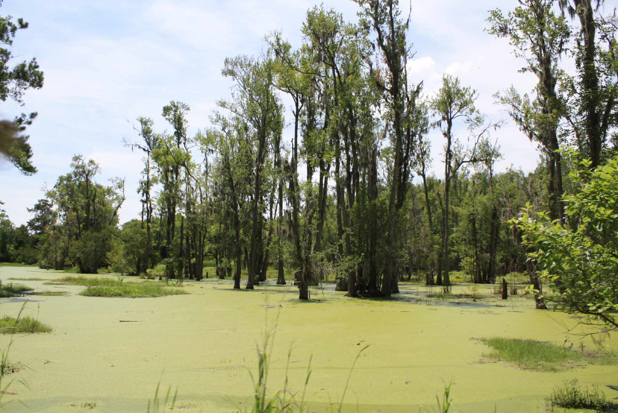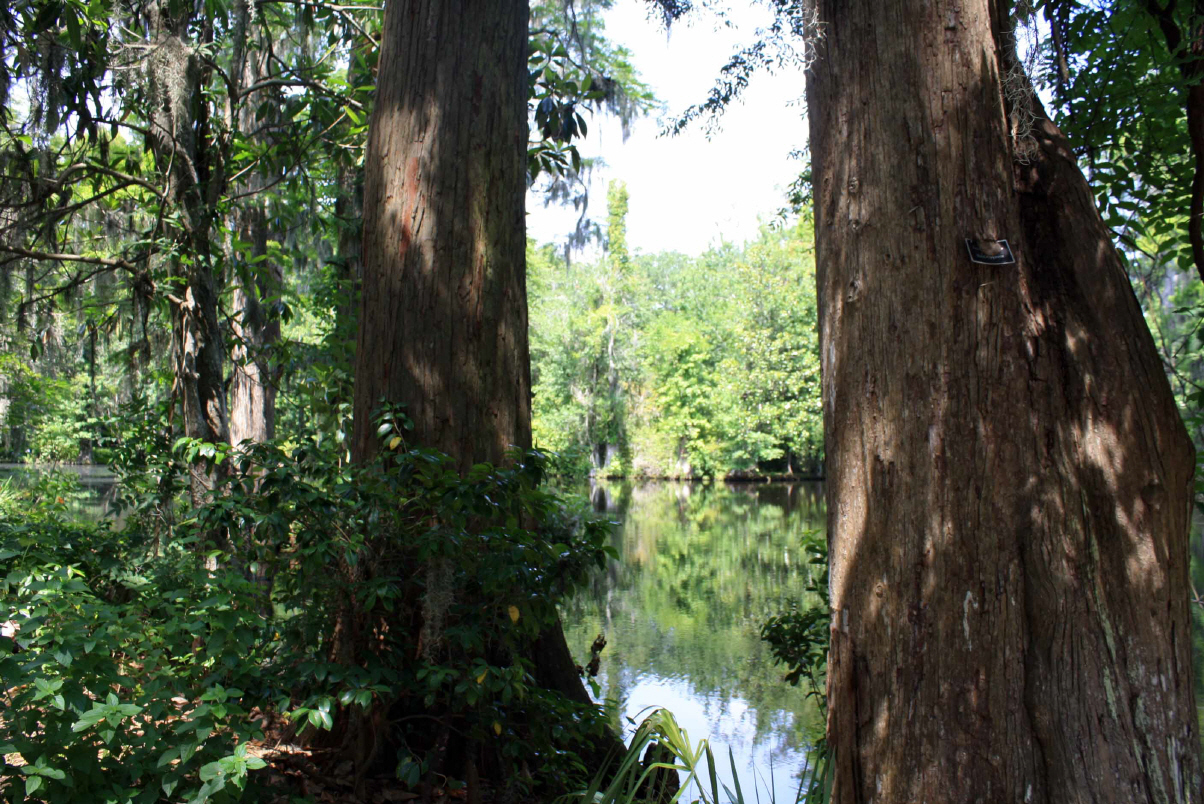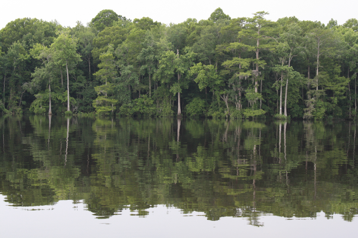 Wir besichtigen unter Fuehrung die Villa und machen spaeter eine Wanderung ueber die Plantage. Riesige Waelder gehoeren dazu und Fluesse und Suempfe, wo frueher Reis angebaut wurde. Heute beherbergen sie Aligatoren, Fische, Schildkroeten und Seeschlangen. Es ist nicht erlaubt, allein dort spazieren zu gehen. Die Suempfe sind nicht braun, schlammig und sichtbar, ein feines Gruen zwischen den Baeumen taeuscht das Vorhandensein von Wiese vor und wuerde den unkundigen Spaziergaenger verschlingen. Uralte dicke Eichen mit Luisianna-Gras zanken den Fotografen in uns, unmoeglich ist es, diese ausladende Pracht auf ein Foto zu reduzieren. Sie werden bis zu 1000 Jahren alt.