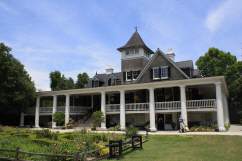 Urspruenglich gab es zwei Farmen hier, deren Sohn und Tochter sich praktischerweise verliebten und heirateten und somit alles ein Besitz wurde. Waehrend der Prohibition in den zwanziger Jahren traf sich hier abseits der grossen Staedte aller Reichtum der Welt und die Prominenz zum Feiern und zum aktiven Vernichten von Alkohol aus jeglichem Anlass. Selbst die Royals aus England bereicherten die Gaesteliste. Anhand der Raeume, die wir besichtigen koennen, sehen wir im Geiste die rauschenden Baelle und Feste, die gefeiert wurden. Aus jedem der Fenster haben wir einen phantastischen Blick in die Weite der Wiesen und Waelder der Plantation, auf der ausladenden das Haus umgebenden Terrasse aus weissem Marmor mit blumenumrankten Saeulen haben wir ein wenig Zeit, das wirken zu lassen