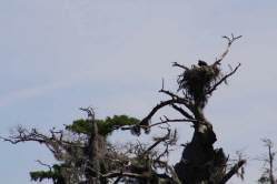 Uns fallen die grossen Nester in den Baeumen auf. Es sind die Wiegen der Adler, es ist Zeit fuer die Aufzucht der Jungen. So wackeln manche kleine Koepfe darin und ihre weit aufgerissenen Schnaebelchen rufen nach Futter.
