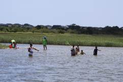 Auch die Stoerche haben Hochsaison. Wir sehen jede Menge laengs der Ufer. Ob sich das auswirkt auf die Einwohnerzahl?