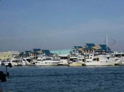 Hier sitzen wir nun seit 2 Tagen gemuetlich im schwimmenden Heim in einer kleinen Marina am Steg, gegenueber die riesigen haesslichen Wolkenkratzer der Donald-Trump-Spiekasinos und es geht uns supergut. Sonntag angekommen - rechtzeitig und mit Ruhe. Gestern der Sturm und krachende Gewitter und Regen. Das tut so gut, sicher und trocken im Boot zu sein und draussen tobt es sich aus. Unser Boot aechzt und stoehnt im Wind bei Beruehrung mit dem Holz des Stegs, es trommelt auf die Luken, wir schlafen wie die Babys und unsere Batterien haben sich schnell wieder aufgeladen. Ein gutes Internet erinnert uns daran, dass dem Absenden eines neuen laengst faelligen Reiseberichtes nichts im Wege steht.