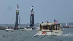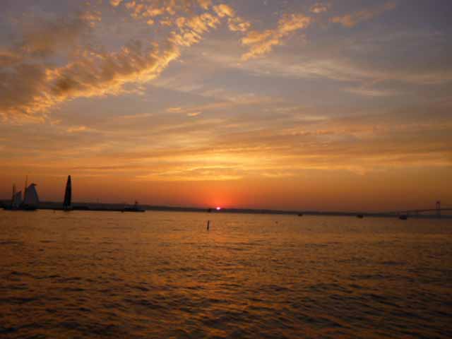 Wir naehern uns dem Hafen von Newport und unser Blick faellt auf Hunderte von Booten auf zahlreichen Mooringfeldern . Der „American’s Cup“ wird ausgetragen an diesem Wochenende! Und darum finden wir auch keinen Platz. Alle Ankerfelder sind mit Moorings ausgelegt, dicht an dicht. Aber wem sie gehoeren, koennen wir nicht herausfinden. Am Funk erreichen wir niemanden. Wir sind muede und die Sonne geht in einer Stunde unter. Kein guter Zeitpunkt, um weiter zu fahren. Wir schnappen uns eine der wenigen leeren Moorings und versuchen weiterhin, den Hafenmeister an die Strippe zu bekommen. Als das gelingt, ist es bereits dunkel. Wir koennen nicht bleiben, die Mooring ist bereits vergeben und alle anderen auch. Die Veranstaltung zaehlt zur Hauptattraktion der Yachtszene - da bleibt niemand zu Hause an einem solchen Wochenende.