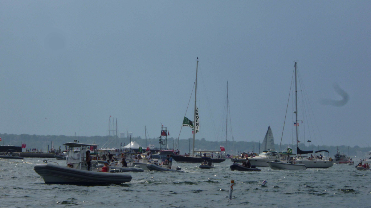 Wir haben endlich Zeit klar Schiff zu machen. Seit unserem Ankommen gestern klebten wir praktisch im Cockpit und sahen fasziniert dem bunten Treiben zu. Die Begruessung in New England haette nicht schoener sein koennen.