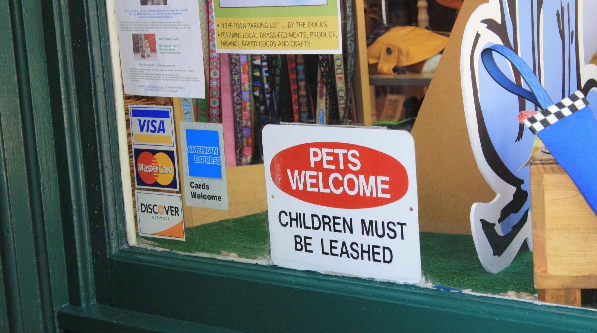 Die alte verzierte Tuer zum Buechershop zeigt einen Zettel: „Hunde willkommen, Kinder bitte an die Leine nehmen“. Im Schaufenster desselben steht ein getigertes Sofa mit Hundekoerbchen. Dort waelzt sich ein weisses lebendiges Wollknaeuel mit rosa Schleifchen und klaefft seinen Bruder an, der lieber am bunten Teppich nagt als mit ihm zu spielen. Wohlgemerkt, es ist ein Buchshop und die Besitzerin laesst ihre Lieblinge gewaehren.