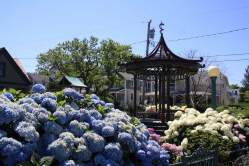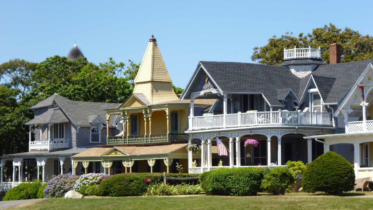 Der Bus bringt uns auch nach Oak Bluffs in die Cottage City. Eine Ansammlung von 300 filigran gebauten „Lebkuchenhaeuschen“, bunt angemalt und reichlich verziert. Einst schlugen hier auf unberuehrtem Gebiet die Methodisten die Zelte auf fuer ihre sommerlichen Erweckungsveranstaltungen. Nach und nach wurde die Gegend immer beliebter. Die Menschen stroemten auf die Insel auf der Suche nach Sonne und Seelenheil. So verwandelte sich die Zeltstadt allmaehlich in eine bunte Stadt aus reich verzierten Landhaeuschen, Pensionen und kleinen Laeden. Seit 1907 heisst dieser Ort Oak Bluffs.