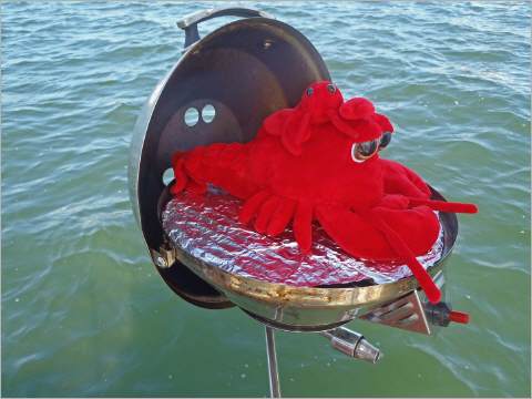 Waehrend der Big Fish auf unserem Grill an der Reling brutzelt, den wir unterwegs angelten, schluerfen wir unseren Ankommwein und schauen uns die vielen Boote an, die an uns vorbeiflanieren. Im Gegensatz zu den Luxusmotoryachten in Florida zeigt sich hier der Reichtum in augenfaelligen Holzbooten aller Groessen mit entsprechender Besegelung. Modelle, die wir sonst nur aus Zeitschriften kennen. Ein Augenschmaus.