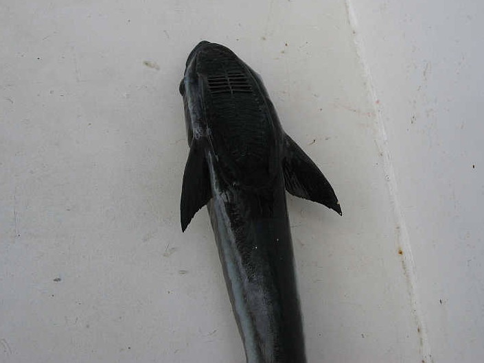 Der Haken war nicht fest im Maul und Wilfried löste ihn rasch und wollte ihn zurück in die Freiheit schicken. Das ist kein Fisch, den man essen möchte. Mr. Fisch machte bei dem Manöver eine halbe Rolle und saugte sich so fest an der Backskiste, daß er nicht mehr zu lösen war. Diese Befreiungsaktion konnte er leider nicht überleben. Drum der frühe Hausputz und die Angel ließen wir dann drinnen. Auf dem Foto (anklicken zum vergrößern) kannst Du deutlich die Ansaugfläche sehen, sieht ähnlich aus wie ein Kühlergrill oder eine Schuhsohle.