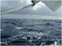 Da ich weiter Richtung Westen wollte, kam irgendwann der Moment wo ich den Europäischen Kontinent verlassen musste. Das war im Sommer 2006 der Fall. Die Überfahrt von Portugal nach Madeira gehört zu einem meiner schönsten Törns. Sonne, angenehme Temperaturen, auch in der Nacht. Halber Wind von 15 bis 20 Knoten, d.h. der Wind kommt von der Seite. In einer Nacht habe ich "Drei Männer im Schnee" von Erich Kaestner als Hörbuch gehört. Der Umstand, dass ich Badehose und T-Shirt an hatte und der Sternenhimmel über mir funkelte, machte die Nacht zu einem besonderen Genuss.